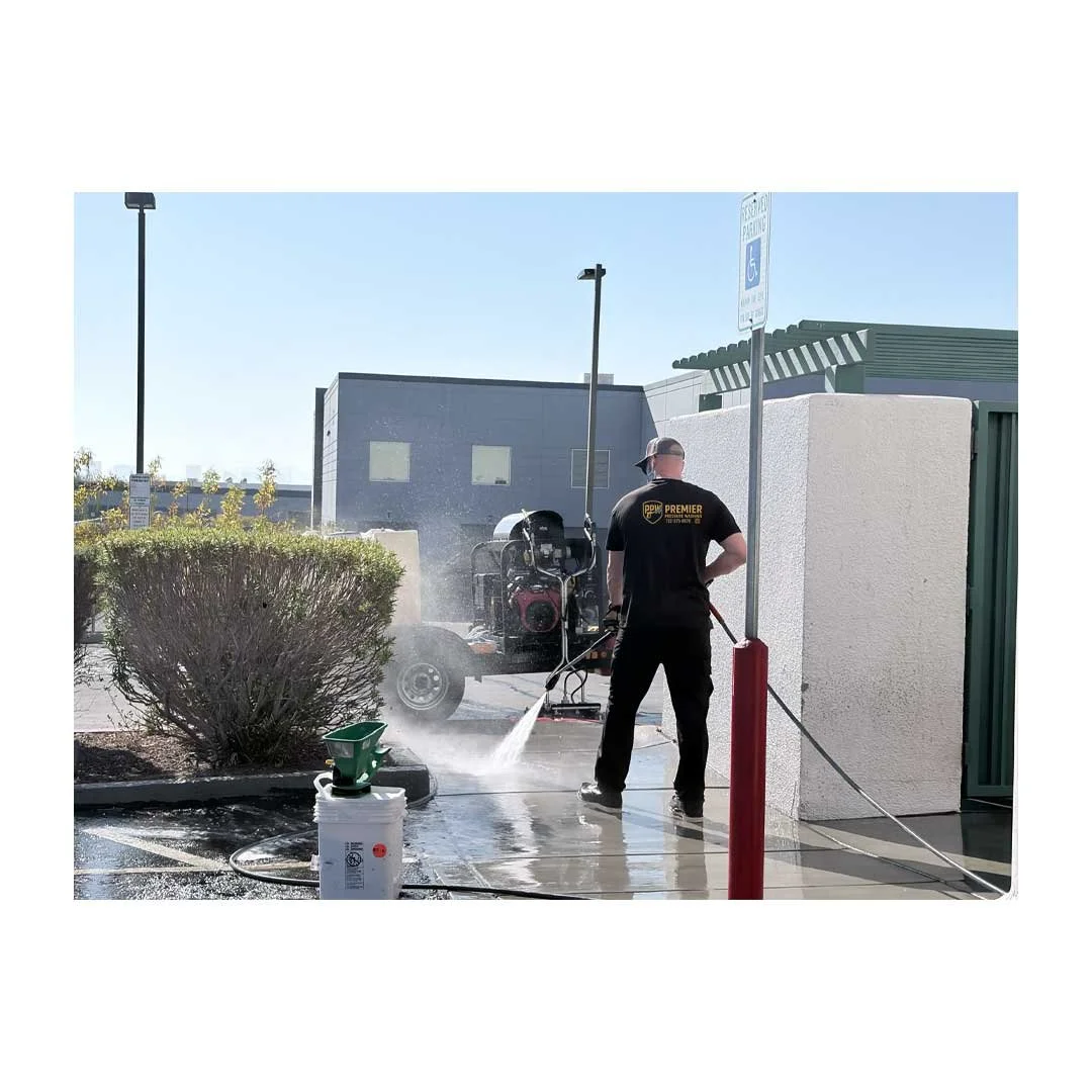 At Premier Pressure Washing, we specialize in professional exterior cleaning and flatwork for commercial properties across Las Vegas. From sidewalks and stairwells to building exteriors, parking lots, and garages, our licensed and ensured Premier Technicians remove grime, debris, graffiti, and gum buildup to keep your property spotless and inviting.